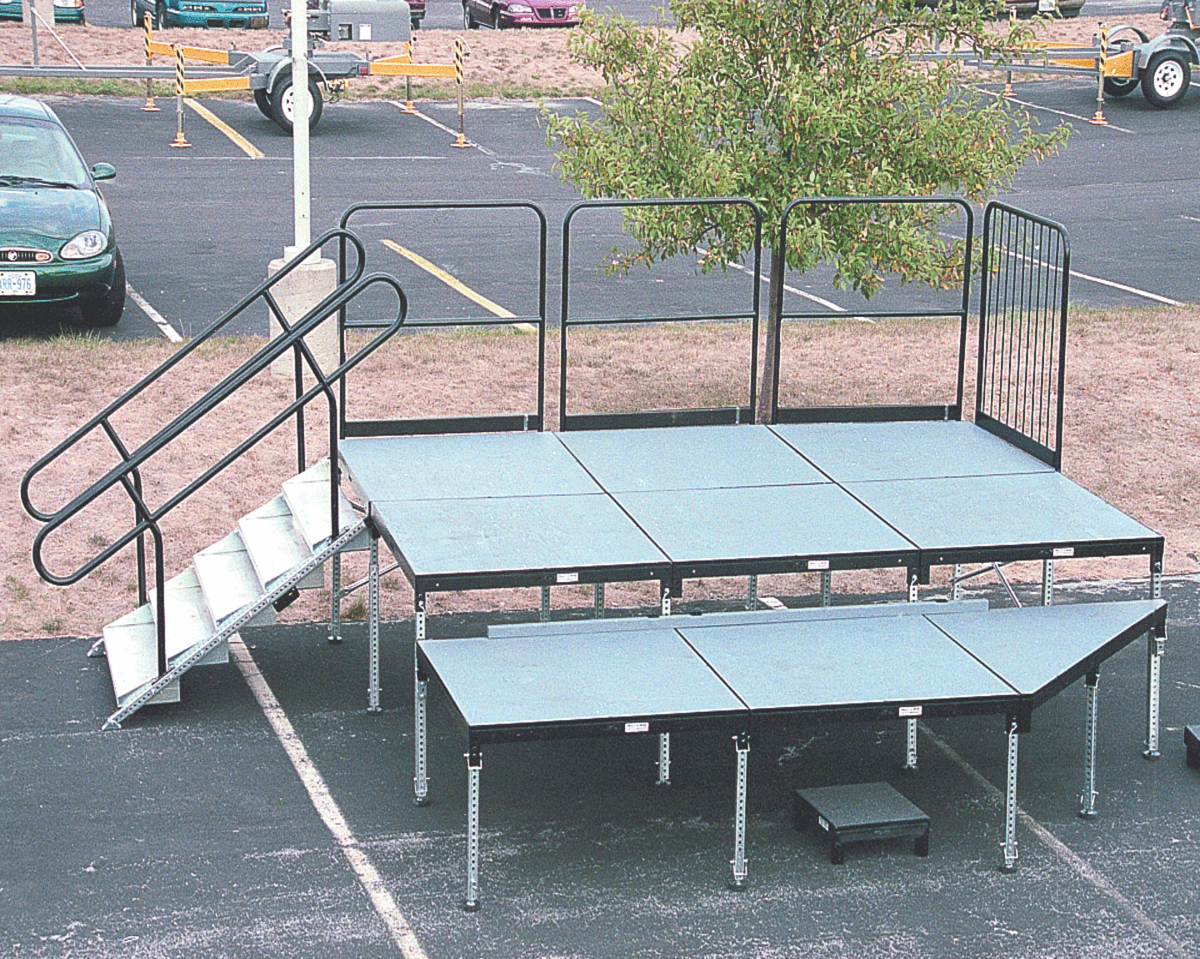 Please note that for stages above 18 inches, you’ll definitely need railings and stairs with our stage section rentals.