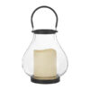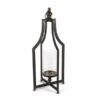 The Black Metal Lantern includes a glass cylinder and LED candle, Measuring 8 by 22 inches.